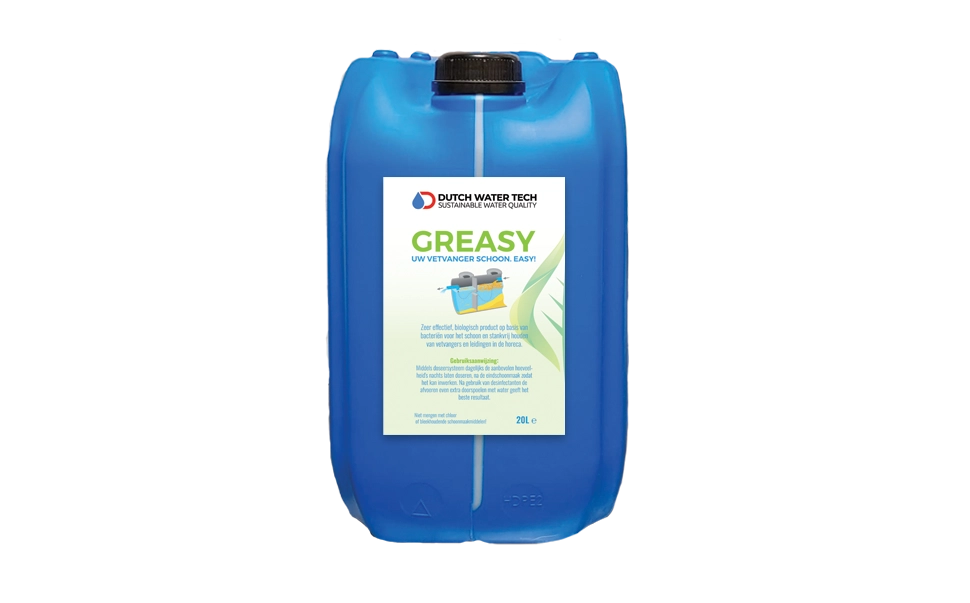 Navulpakket met een vat met 20 liter Greasy bacteriën. Genoeg voor 3 maanden.