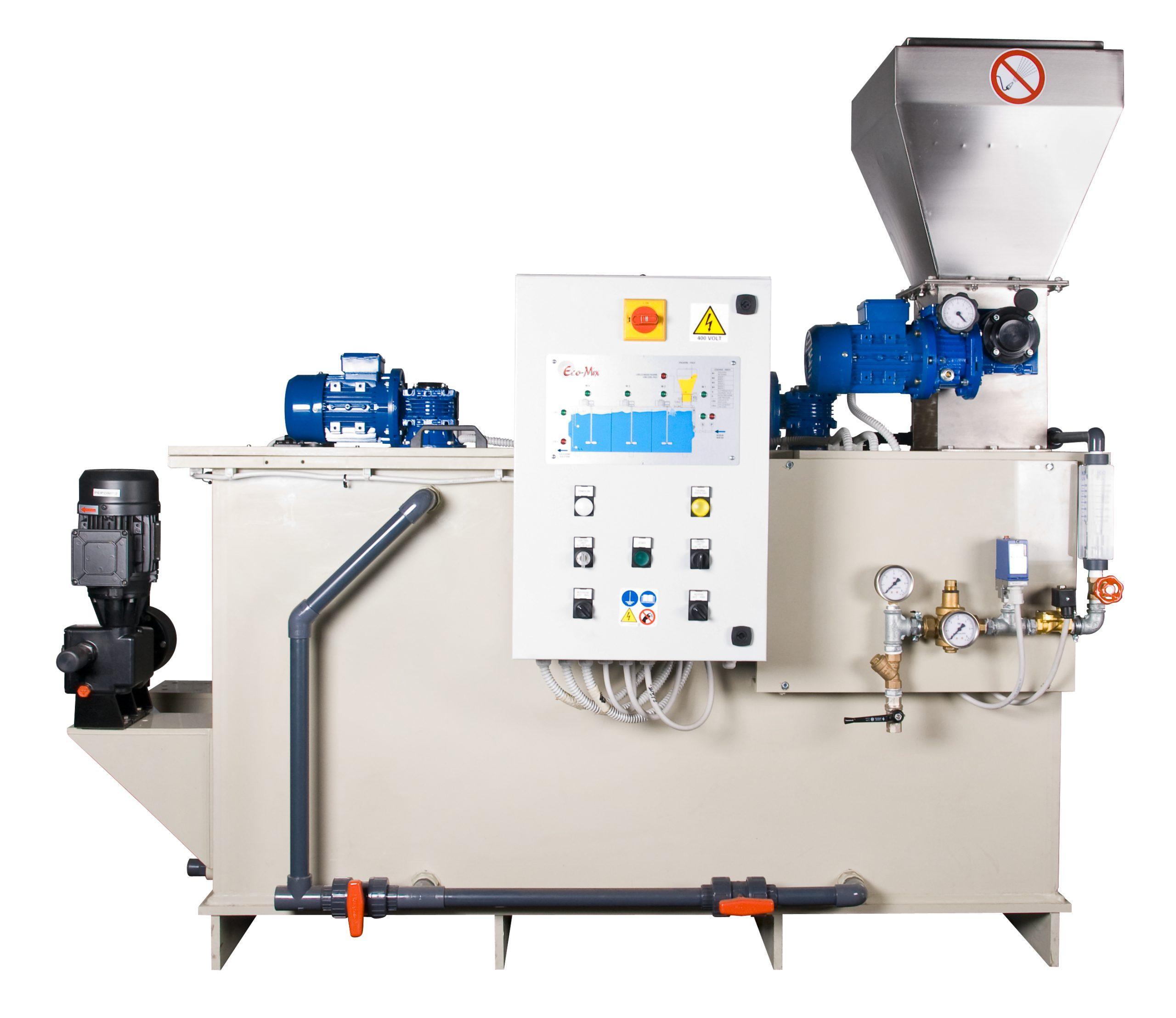 Volledig automatische polymeer aanmaak unit incl. besturingskast.