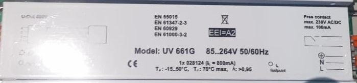 Original ballast for SITA UV Rack 80 UV systems. Sita UV product code UV 661-G. Each lamp needs one ballast.