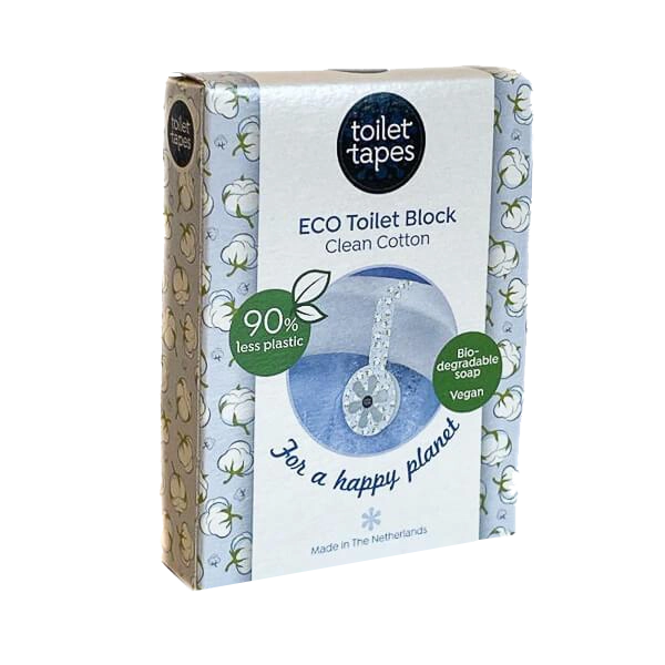 Probeer dan eens Toilet Tapes! Deze ecologische wc blokjes bevatten 90% minder plastic, dan een normaal wc blokje. Daarnaast zijn ze ook ook simpel en handig in gebruik, en ruiken erg lekker! Clean Cotton heeft een heerlijke, subtiele katoenbloemen geur.